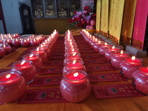 农历十七,阿弥陀佛圣诞殊胜日,法会供灯。法师带领僧众诵经普佛。殿内佛光普照,经声朗朗,虔诚备至。同力一心,共祈众生和平、国泰民安、正法久住、佛日增辉。