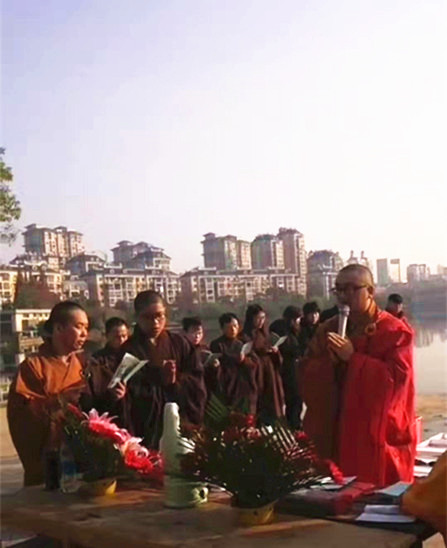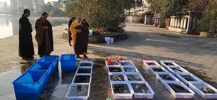 二零一九年农历十一月十五,适逢阿弥陀佛圣诞日,华严寺第三期放生法会在湿地公园湖边如期举行。我寺广大居士信众在惟一法师带领下放生物命。祈:放生大众,阖家无碍,免离九横,福慧增长,安康吉祥,清净自在。法会功德回向尽虚空遍法界一切如母众生,业障消除,消灾延寿,离苦得乐,往生极乐净土!