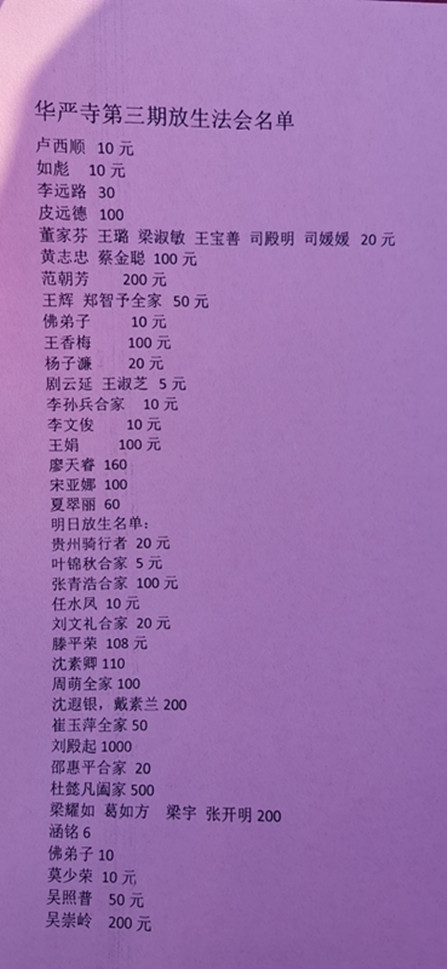 本次放生善款明细,随喜大家发心,随喜前来参加放生的师兄们和网络上随喜的师兄们!随喜赞叹现场义工们,南无阿弥陀佛!