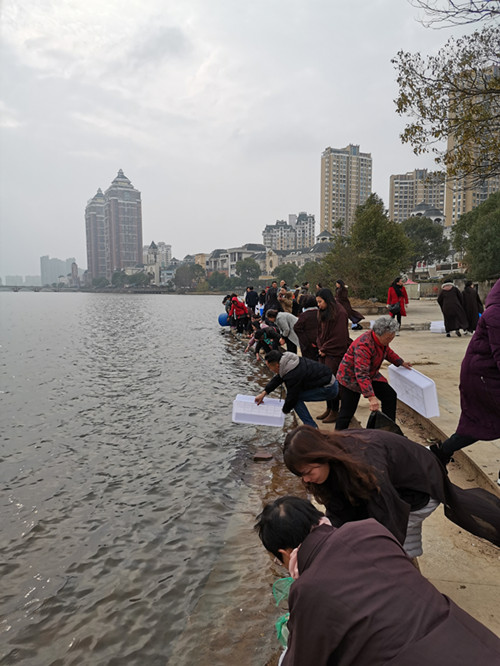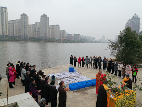 2020年1月9日,农历腊月十五,华严寺僧众在惟一法师带领下在湿地公园举行己亥年最后一次放生法会。法会殊胜圆满。