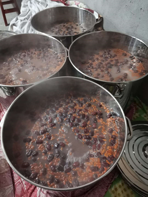 熬制腊八福慧粥所需材料:大米、糯米、黑米、绿豆、红豆、花生仁、葡萄干、百合、枸杞、莲子、红枣、桂圆仁、纸盒,粥勺等。共计3600元,大众随喜发心。