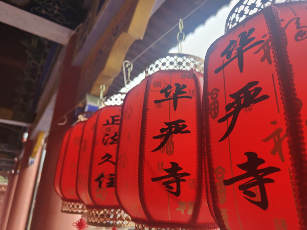 华严寺灯笼祈福,挂合家名字,全年,每个灯笼功德金100元。总共一百个。