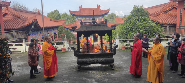 前往上香礼佛和参加法会的香客、游客、信众等络绎不绝,当天还举行了新年普供仪式。大众虔诚礼拜《观音宝忏》,消除业障,增福延寿。