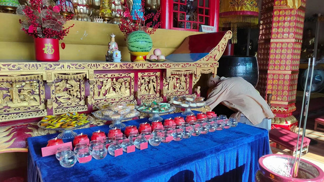 因疫情影响,善信可线上功德随喜。可联系寺院客堂及在线义工咨询。