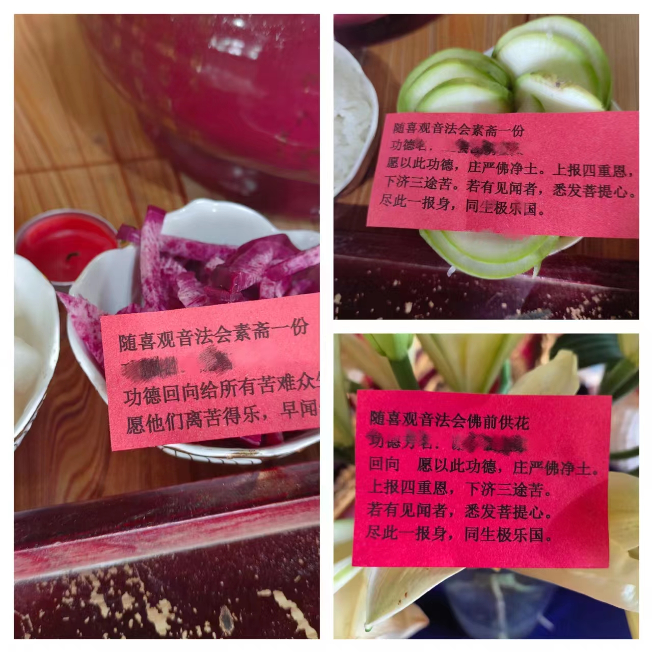 愿以此功德回向救护众生,发慈悲心,践菩萨行,赎其身命放使逍遥。祈愿世界祥和,人心向善,诸恶蠲除,灾厉不起,风调雨顺,国泰民安。